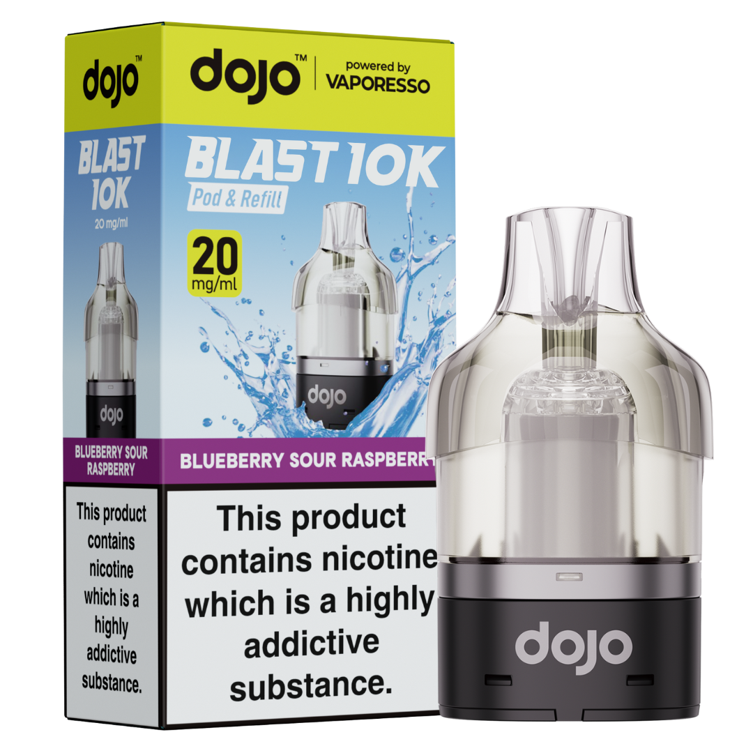 Designed exclusively for use with the Vaporesso Dojo Blast 10K Vape Kit, this refill pack includes a 2ml prefilled podand an 8ml refill container, both filled with 20mg salt nicotine e-liquid. With up to 10,000 puffs per pack, it’s a high-capacity, hassle-free vaping solution for those who want strong flavour and smooth satisfaction.